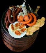 Embutido más conocido como «morcilla extremeña de patata», esta elaborada con grasa de cerdo ibérico, y cuyo ingrediente principal es la patata cocida condimentada con sal y pimentón (picante).