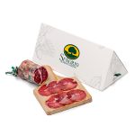 . El Lomo doblado de bellota 100% Ibérico puro, es una pieza sin igual. Tras mas de 6 meses de secadero y bodega natural, el producto alcanza sus magníficas cualidades de aroma y sabor.