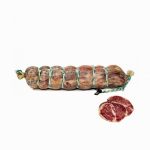 . El Lomo doblado de bellota 100% ibérico, tiene como ingredientes: limpio de grasa, condimentado con sal, ajo y pimentón de La Vera, untado en una fina capa de manteca.